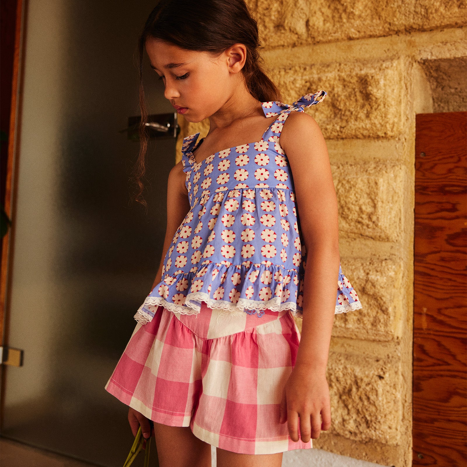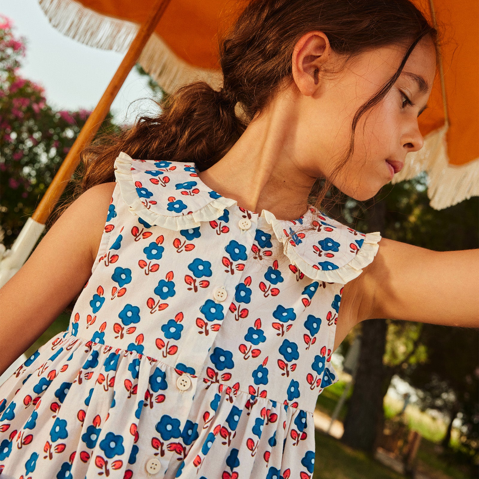Flowy dresses, shorts and light blouses... Each piece is an invitation to discovery and carefree holidays. Designed to accompany games, laughter and dreams, this collection celebrates summer with poetry and freshness.
