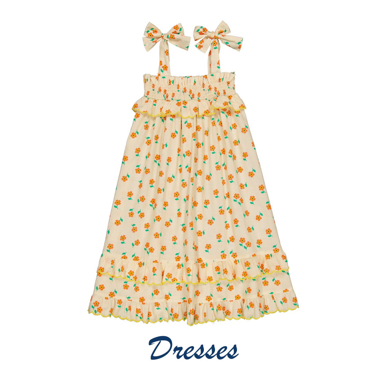 Chic and easy to wear little dresses, pretty shorts and blouse for running in the countryside or barefoot on the beach… colors as if they had been sunburnt, apricot gingham, wisteria pink checks, romantic floral patterns...
